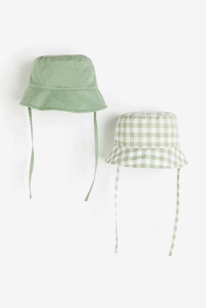Mũ vải (2 mũ) xanh lá / kẻ trắng