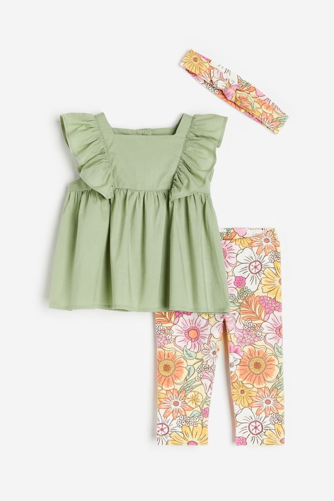 Set bộ kèm turban xanh lá / hoa